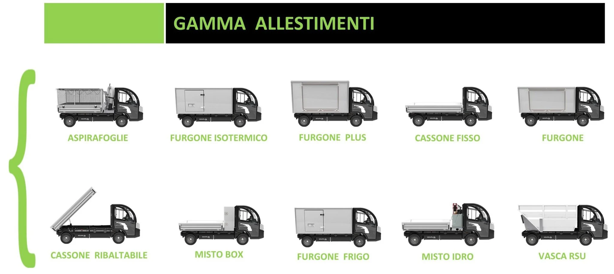 Totalmente elettrico e completamente personalizzabile, grazie alla struttura base, su cui si montano i vari allestimenti, il G4 è omologato per la circolazione su strada e immatricolabile come quadrimobile. Può essere equipaggiato con batterie al litio o batterie al piombo e ha il vantaggio di ricaricarsi anche con una presa domestica. Ha un raggio di sterzata che gli consente di muoversi con agilità in ogni spazio, senza perdere in comfort e sicurezza. Economico nei costi di ricarica e di gestione, il veicolo rende produttivo qualsiasi impiego. Disponibile anche nella versione a passo lungo, il G4 Long offre più spazio per esigenze lavorative specifiche.